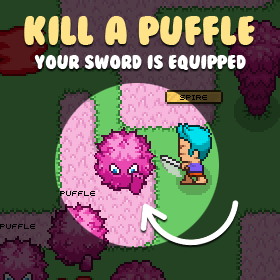 - Defeat puffles: They are pink spiky creatures located in the North East (top right) of the main town. Each puffle you defeat will drop 3 coins for you to collect, as well pixels (XP).